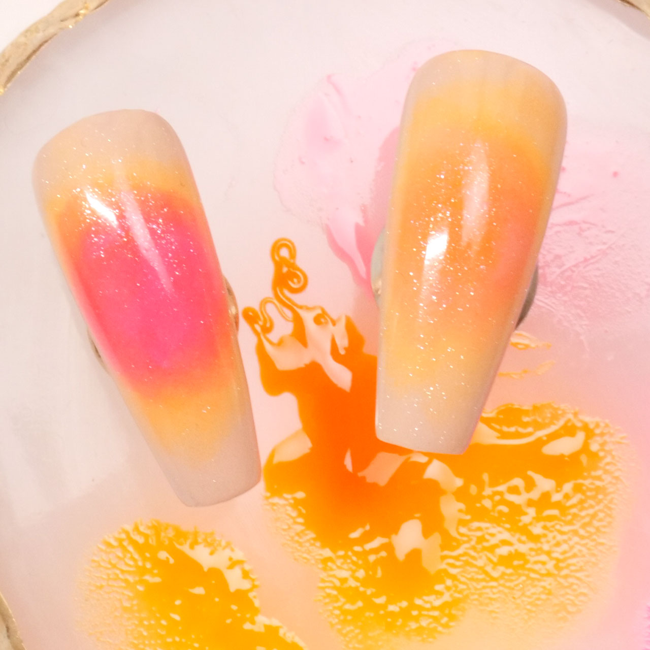 Inspiriert von der Spiritualität und der Idee, dass jeder Mensch eine einzigartige Aura um sich herum hat, wurde diese Technik entwickelt, um diese Energie auf den Nägeln widerzuspiegeln.
